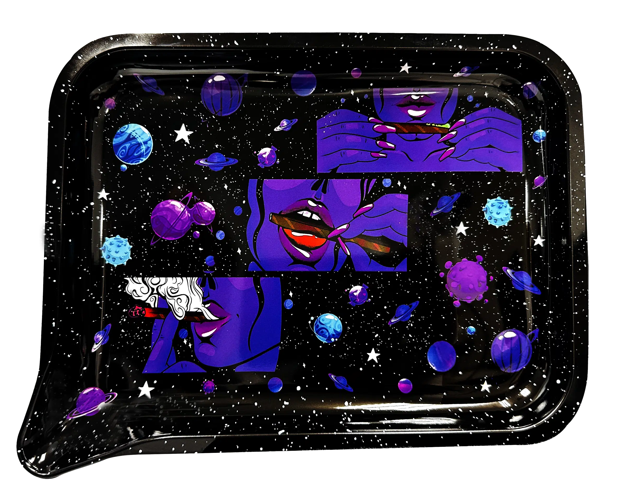 FRT3D-031 Get Lost Medium Funnel Rolling Tray with 3D Magnetic Lid (Get Lost Smoking Purple Girl)