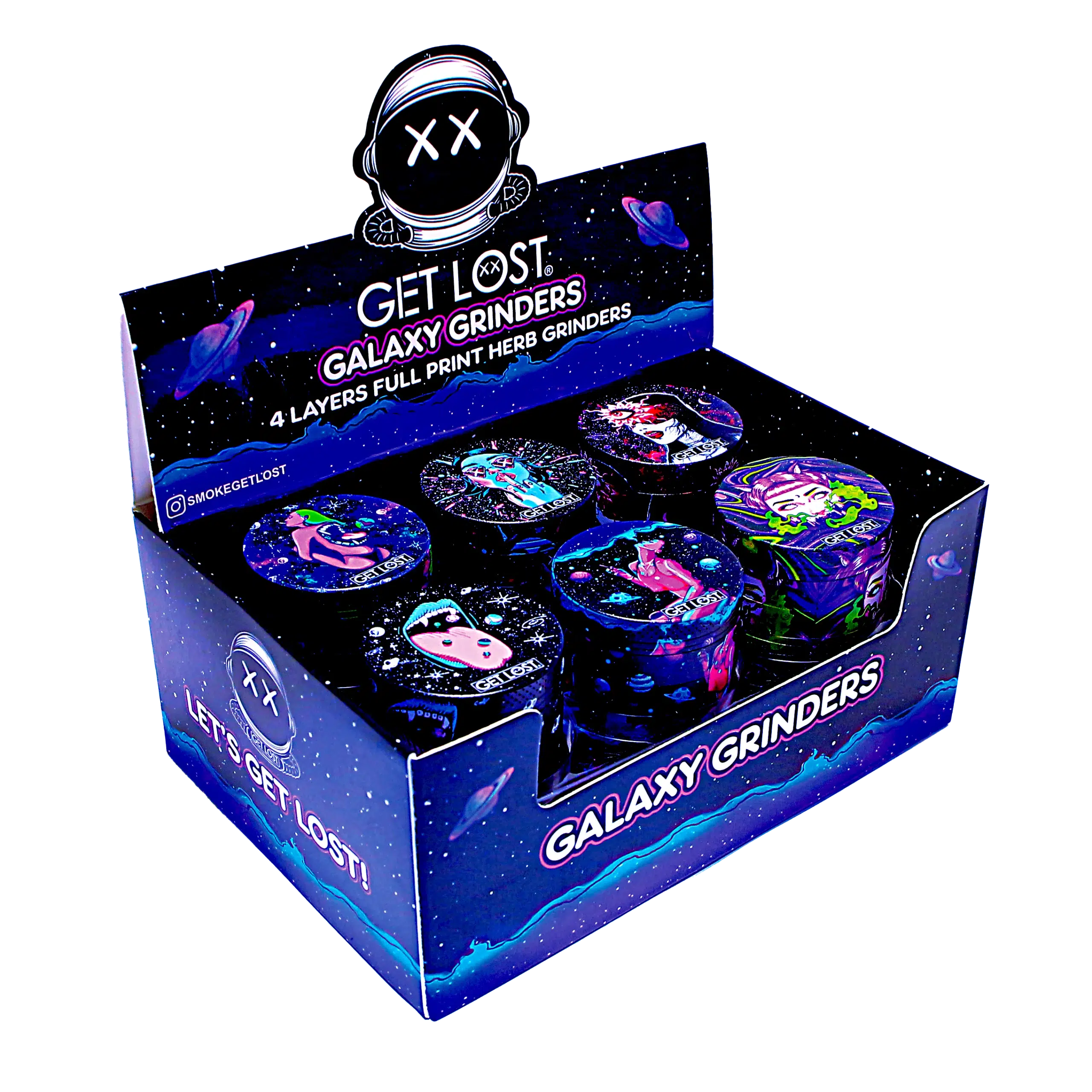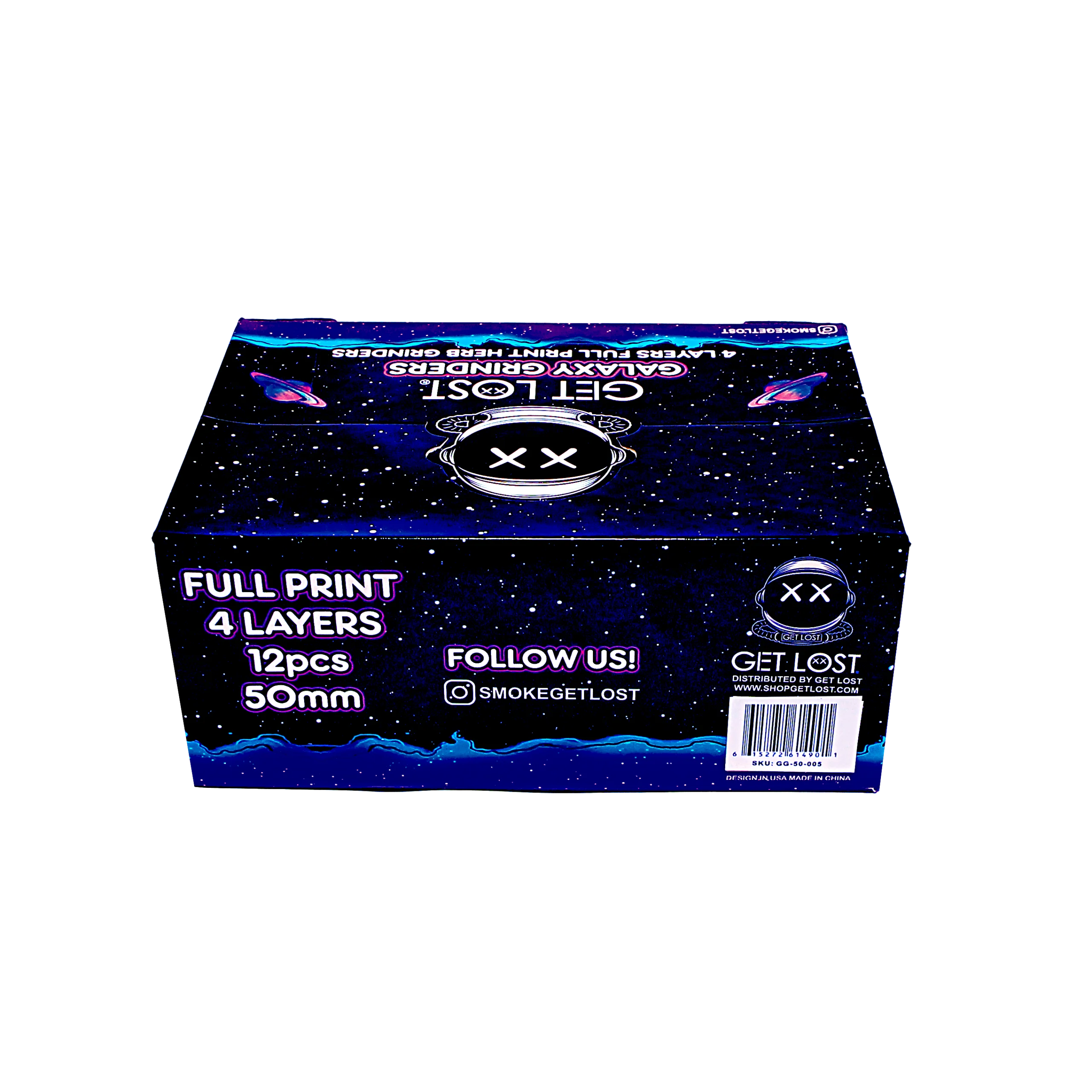 Bring the universe to your fingertips with the Get Lost Galaxy Grinders — now in a compact 50mm size and packed in a 12-count display. These 4-layer herb grinders combine bold full-body cosmic art with functionality designed for everyday use.